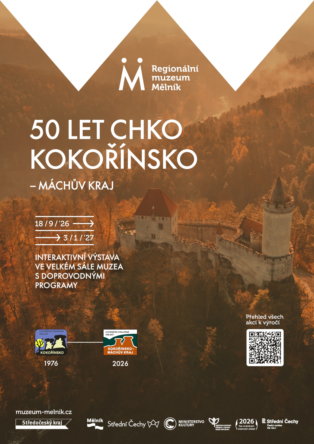 - 18. 9. – 3. 1. 2027 výstava v Regionálním muzeu Mělník: 50 LET CHKO KOKOŘÍNSKO - MÁCHŮV KRAJ. Zajímavosti o fauně, floře i samotné krajině Kokořínska se dozvíte na hravé výstavě s výukovými programy pro školy a turistickou výzvou.