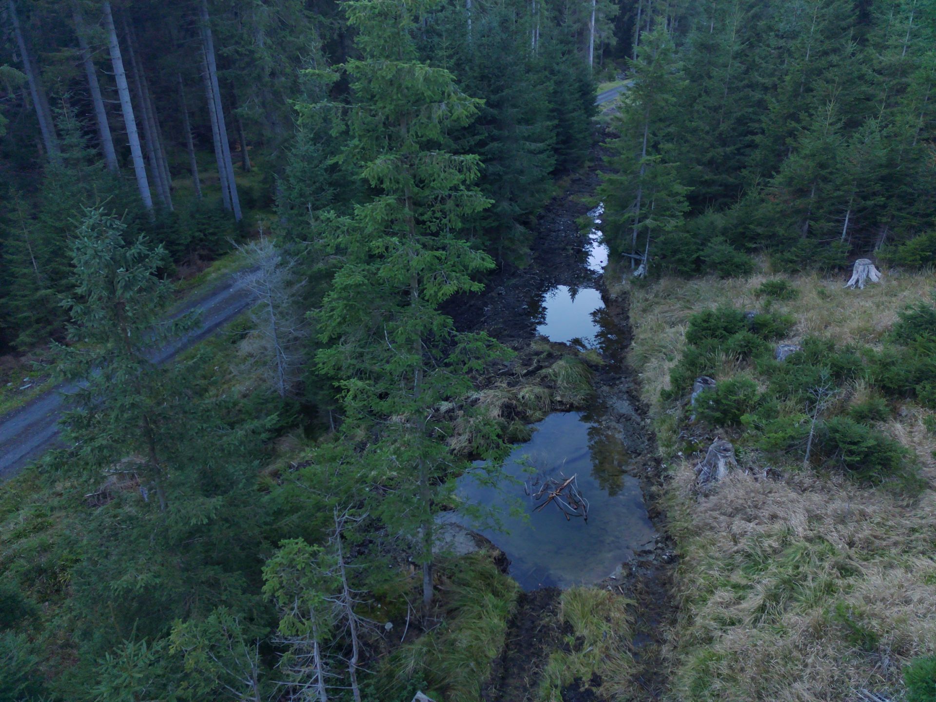 Konkrétně byla realizována opatření typu jáma-hráz-jáma, a to na nevyužívaných přibližovacích linkách, které byly určeny pro vyvážení kalamitního dřeva. Tento typ opatření byl realizován v celkové délce přes 3 km. Naopak na využívaných technologických linkách byly zřízeny příčné odvodňovací objekty typu terénní vlna, které budou zakončeny infiltračními objekty typu šachovnice. Celkem bylo realizováno 13 ks terénních vln zakončených šachovnicí. Na vhodných místech byla tato opatření doplněna tůněmi v celkovém počtu 6 ks.