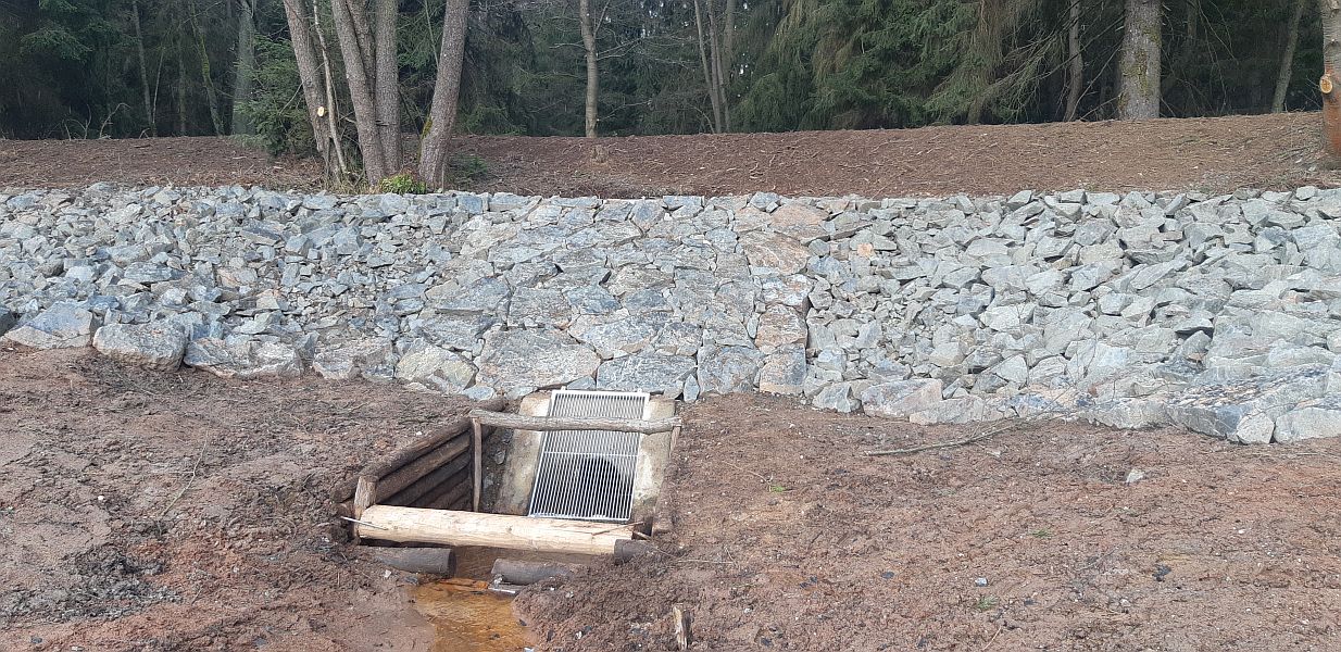 I přes tyto komplikace se podařilo dno částečně odbahnit, opravit stávající požerák a dřevěné loviště a hráz zpevnit lomovým kamenem z Mladotického lomu. Vyměnilo se také původní potrubí bezpečnostního přelivu za obdélníkový profil o rozměru 3x1 m, který zvýšil kapacitu přelivu na kapacitu Q100 . Nátok i odtok od bezpečnostního přelivu se opevnily kamennou rovnaninou. Finální podobu doplnilo dřevěné zábradlí. Hráz se vyrovnala do jedné úrovně a osadila závorami.